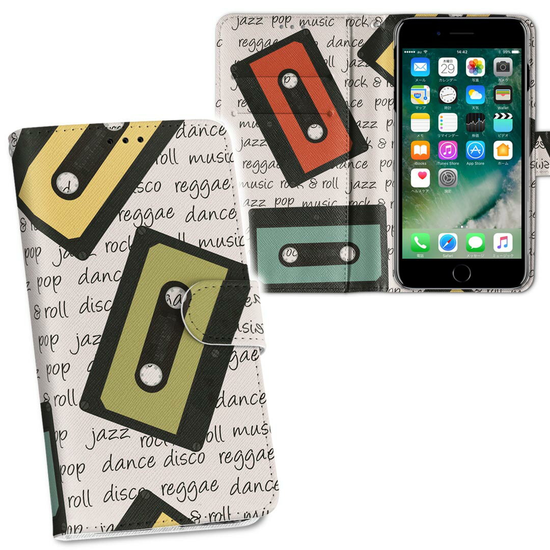 F-03K らくらくスマートフォン me docomo ドコモ f03k 両面プリント 裏表 内側 内面 スマホ カバー レザー ケース 手帳タイプ フリップ ダイアリー 二つ折り 革 フルデザイン 010795 英語 カセット 音楽