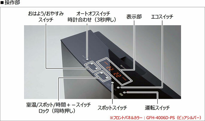 リビングに映える洗練されたデザイン 精巧なオーディオを彷彿させるLEDの光操作部はつややかな1枚のブラックスモールパネルに、操作ボタン・LEDの光を整然と配置した上質なオーディオ機器を思わせるデザインです。