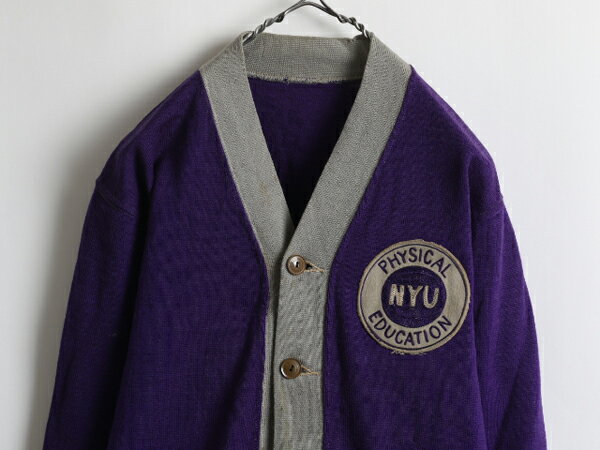 レタード フェルト ワッペン 刺繍 バイカラー 長袖 ウール ニット カーディガン ( メンズ 男性 S程 ) 40年代 ビンテージ 古着 紫 商品説明40年代くらいの2トーンカレッジカーディガンです。