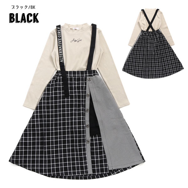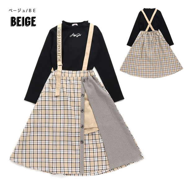 スカートは変形サスペンダーとチェックx千鳥柄でとてもお洒落!。
