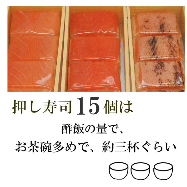 商品名 押し寿司食べ比べセット 内容量 42g×15個 原材料 精白米(富山県産)、サーモン(ノルウェー産/養殖)、ます(チリ産/養殖サケ科)、醸造酢調味料(アミノ酸など)、原材料の一部に大豆、小麦を含む 消費期限 製造日より2日間 (発送エリア)は翌日お届けができる範囲とさせていただきます。
