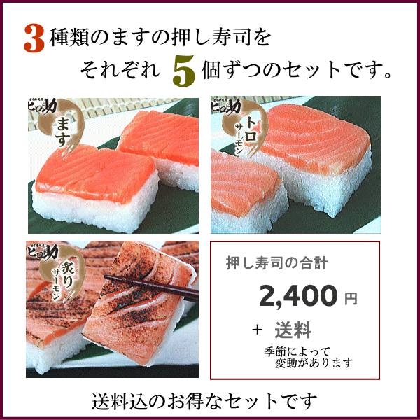 商品説明 3種のます寿司をそれぞれ楽しめます。