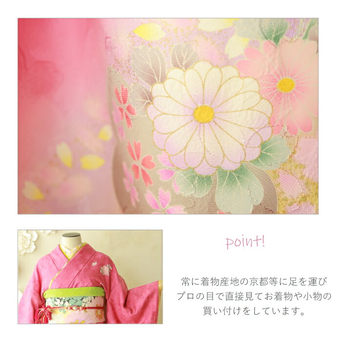 商品情報 品番 1-11-10172bサイズ 身長:142cm〜152cmヒップ:80-85推奨身丈:152cm裄:62cm袖丈:90cm 前幅:23.5cm後巾:30cm素材 振袖表地:正絹裏地:合成繊維胴襦袢:合成繊維注意点 ・本品は当店でレンタル振袖として使っている商品の処分販売となりますので、多少の使用感がございますのでご了承くださいませ。