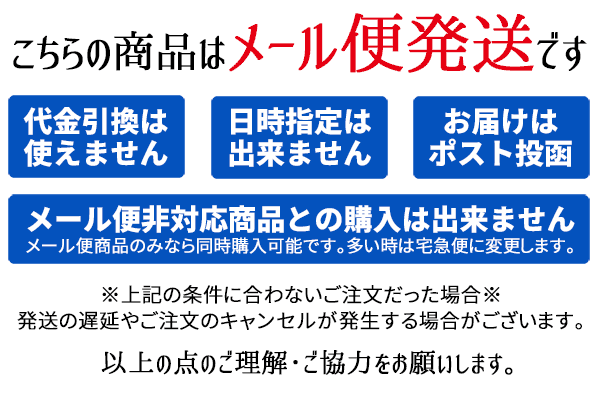 【ご購入の前にこちらをお読みください】※メール便発送商品です※ 発送に条件があるためページ内にある メール便に関する項目をよくお読みください。