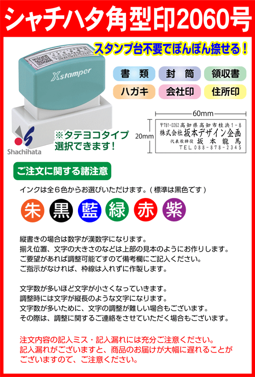 シャチハタ 角型印2060号[別注品]シヤチハタ/住所印/住所判/浸透印/携帯/印鑑/はんこ/shatihata/判子/ギフト/プレゼント/訂正印/別製品[m]